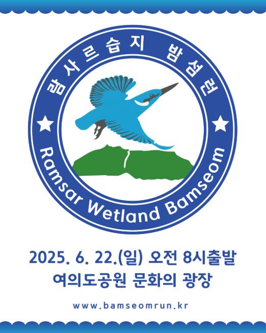 2025 람사르 밤섬런은 서울 도심 한가운데 있는 생태보호구역인 밤섬 일대를 배경으로 펼쳐지는 시민 참여형 러닝 이벤트입니다. 람사르 협약 등록 지역인 밤섬의 생태적 가치를 되새기며, 친환경 라이프스타일을 실천하는 시민들의 발걸음이 이어집니다. 단순한 마라톤을 넘어 생태교육, 환경 체험 프로그램, 지속가능한 라이프에 대한 영감을 제공하는 의미 있는 행사입니다.